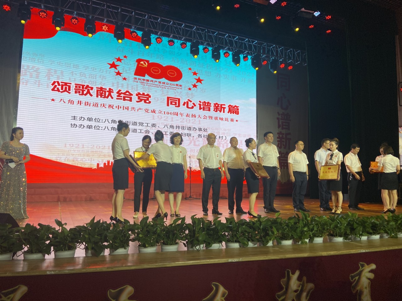 为庆祝中国共产党成立100周年,八角井街道党工委于2021年6月27日在天立学校礼堂开展了“庆祝中国共产党成立100周年表扬大会暨歌咏比赛”。