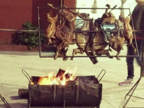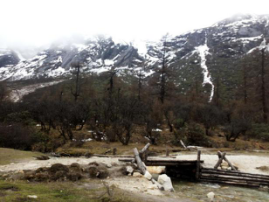 到达山顶,山顶上依旧下着雪,可惜的是没有堆积的满地雪让我们堆雪人打雪仗,惊喜的是居然有露天自助烧烤。