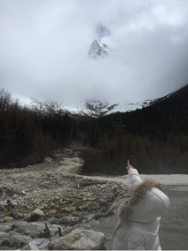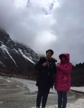 从景区门口到第一个景点相距20多公里,共33个急弯道,乘坐观光大巴上去,司机大叔的车技了得,被我们戏称为“秋名山车神”??墒蔷」?ldquo;车神”车技了得,那33道急弯的威力依然不容小觑,毫无悬念的,我们的小伙伴部分晕车了。所幸,不严重。下车,到达景区,看到大雪山的那一刻便激动了,于是开启了我们拍拍拍的模式,一路走一路拍,上山的路上飘着小雪。