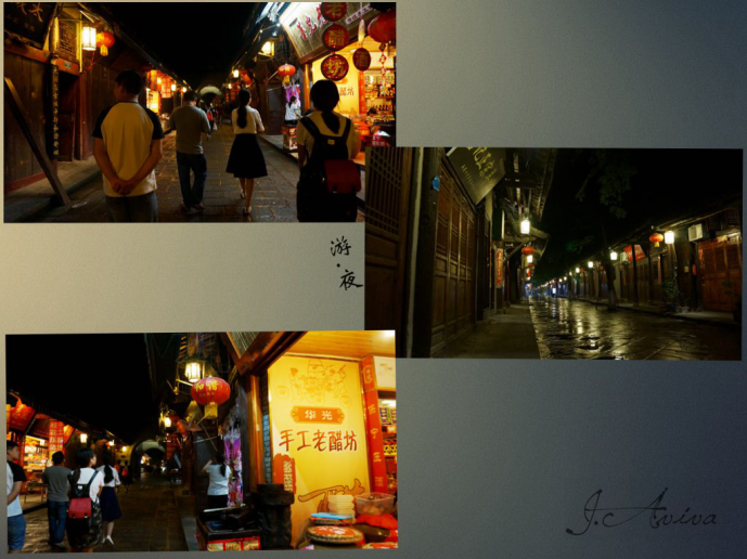趁着男同胞们喝酒的空隙,我们余下的几个人便一同去夜色里寻觅雨后古城味道去了??赡芤蛭丫愎由嫌暌沟脑倒剩赐腥瞬⒉欢?,却更觉远离喧嚣后难得的平静。