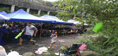 常言道,有孩童之地常多欢,此次出游,多带孩童。梦霞之子,纪波之子,毅之子,云云。清流之水,孩童好嬉戏之。孩童欢乐乎,长者亦甚之悦。受其氛围之染,众同事亦若归于童年,忘情戏水,你攻我防,有来有回。衣沾湿矣,晾后复被湿,满山笑语,别是雅致风味。此所谓忘情于山水之间,素工作中之劳苦,尽随清泉流去兮,实乃快事矣!