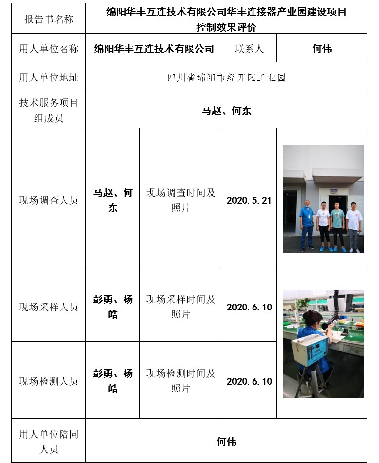绵阳华丰互连技术有限公司华丰连接器产业园建设项目 控制效果评价