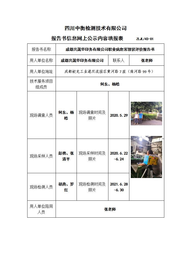 成都兴晟华印务有限公司职业病危害现状评价报