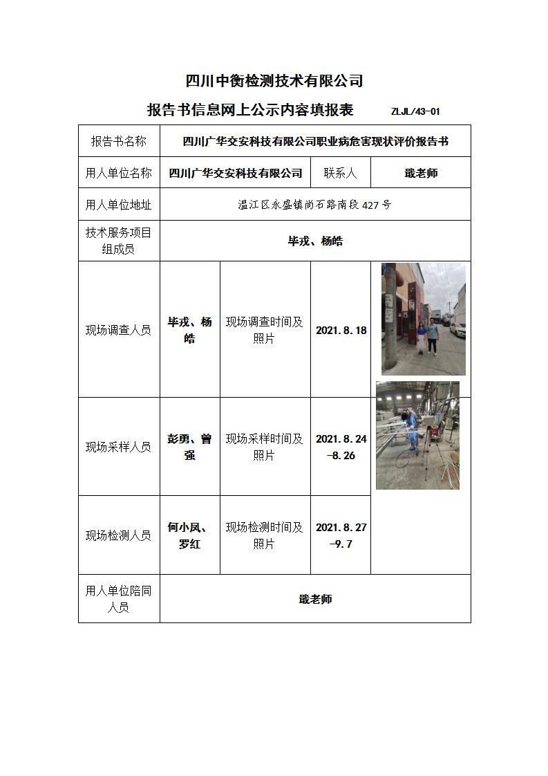 四川广华交安科技有限公司职业病危害现状评价报告书