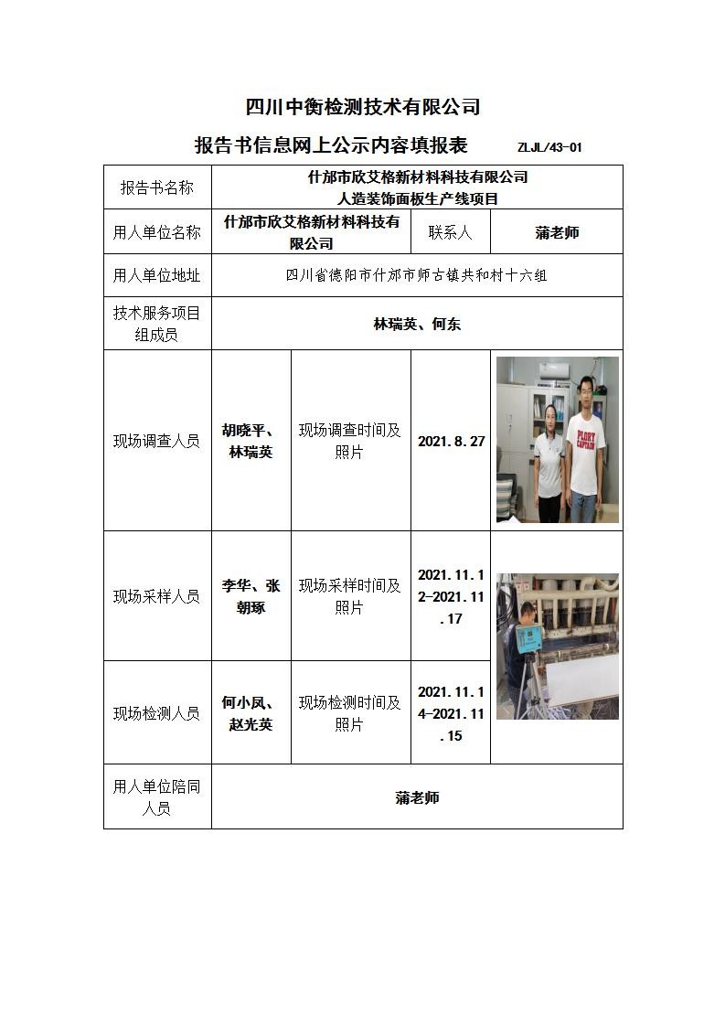 什邡市欣艾格新材料科技有限公司 人造装饰面板生产线项目