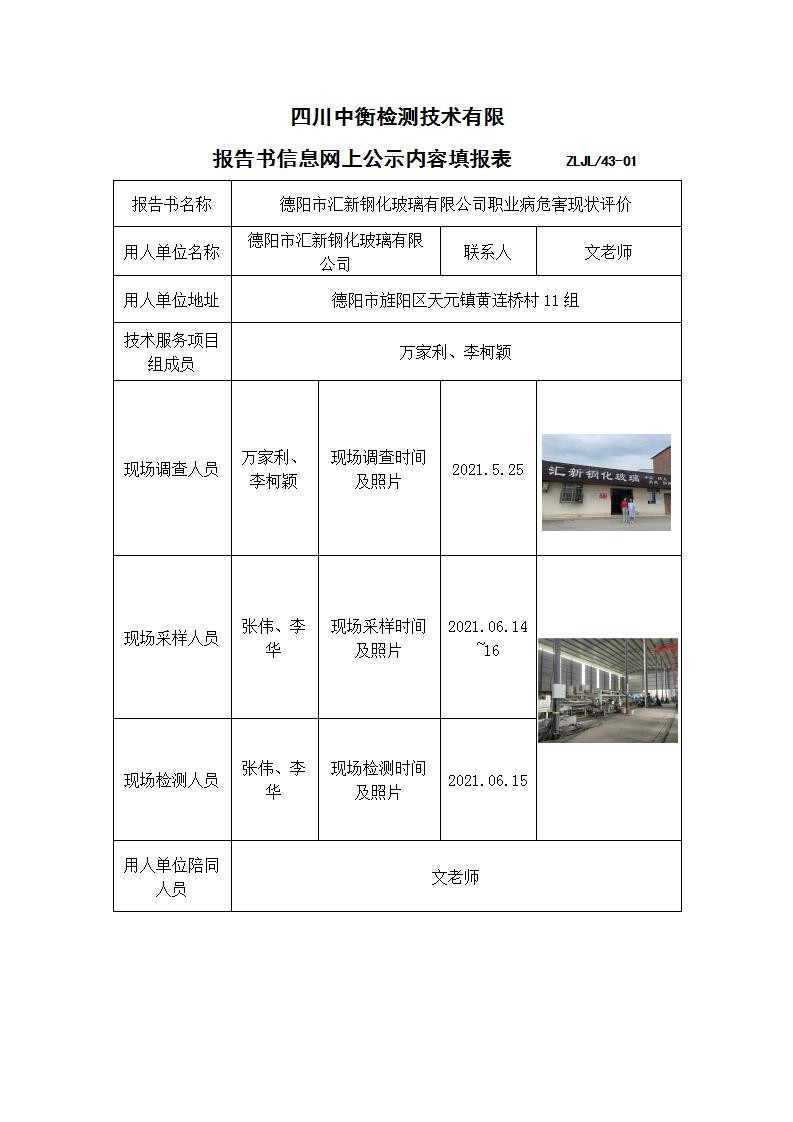 德阳市汇新钢化玻璃有限公司职业病危害现状评价