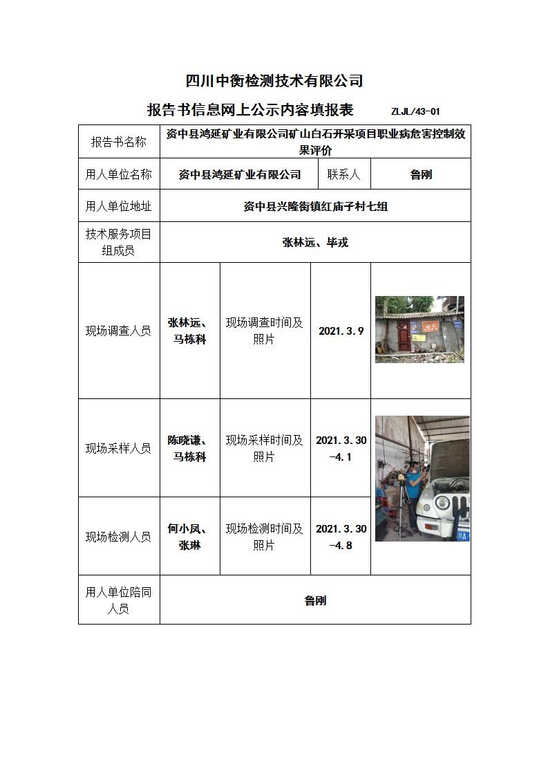 资中县鸿延矿业有限公司矿山白石开采项目职业病危害控制效果评价
