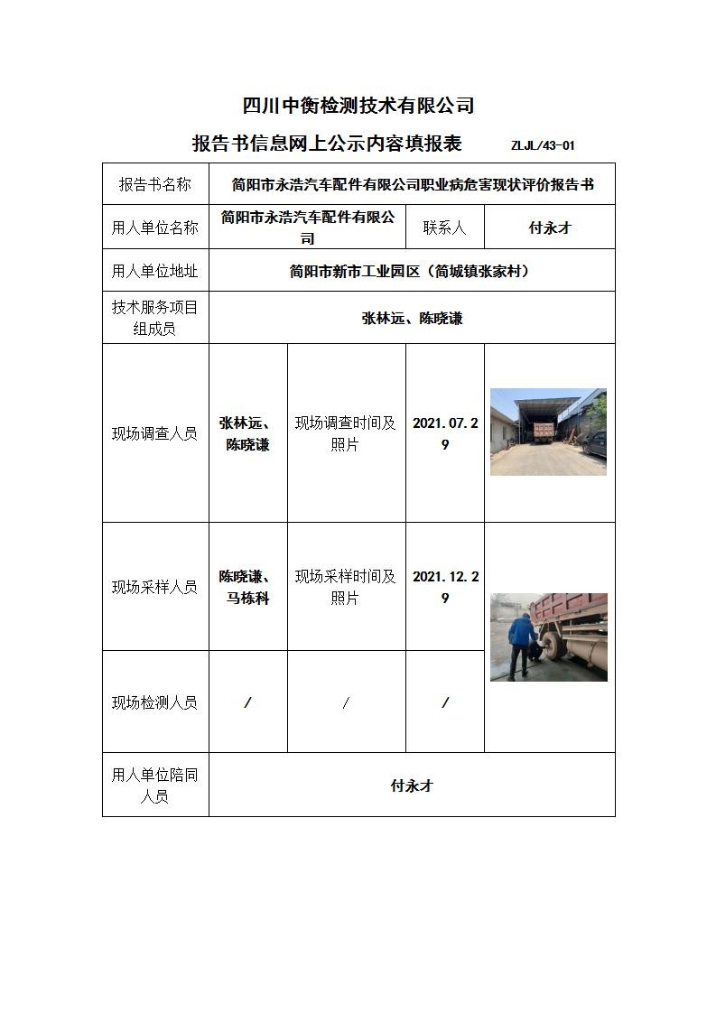 简阳市永浩汽车配件有限公司职业病危害现状评价