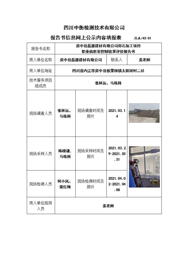 资中县磊源建材有限公司用石加工项目 职业病危害控制效果评价