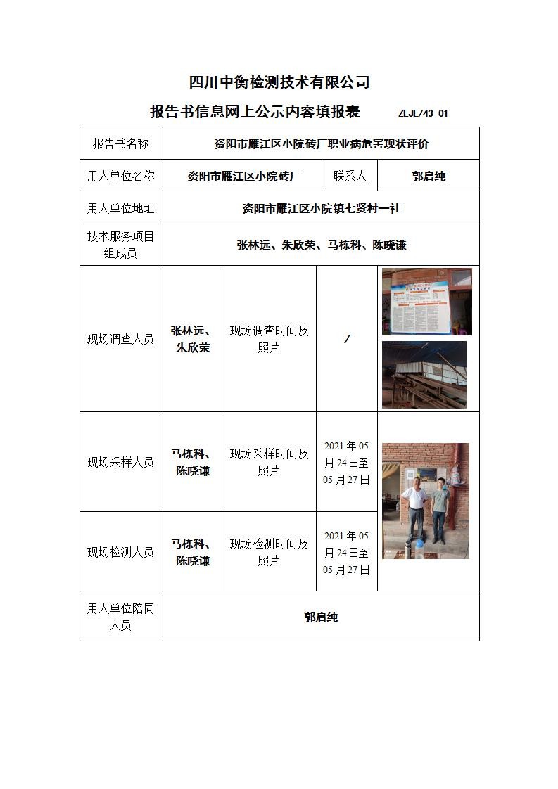 资阳市雁江区小院砖厂职业病危害现状评价