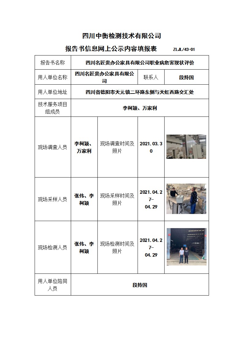 四川名匠贵办公家具有限公司职业病危害现状评价