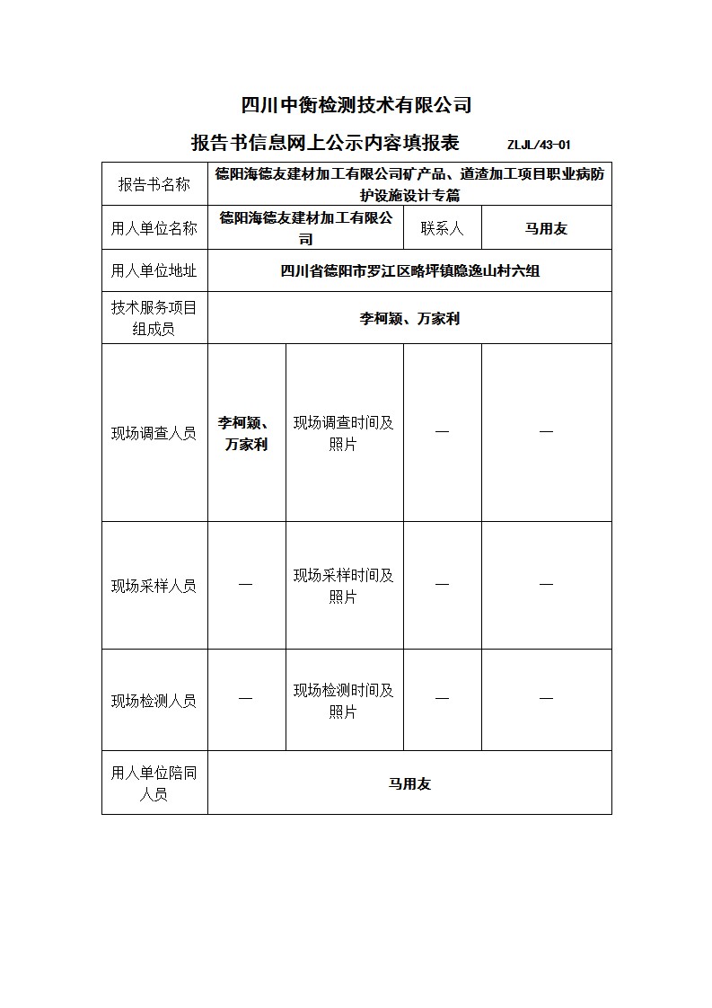 德阳海德友建材加工有限公司矿产品、道渣加工项目职业病防护设施设计专篇