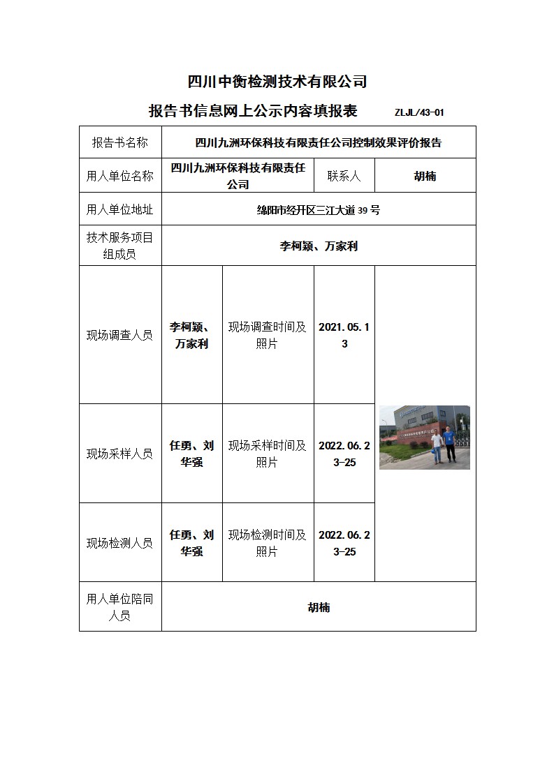 四川九洲环保科技有限责任公司控制效果评价报告