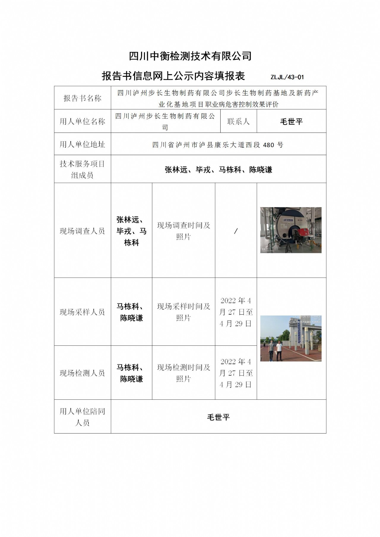 四川泸州步长生物制药有限公司步长生物制药基地及新药产业化基地项目职业病危害控制效果评价