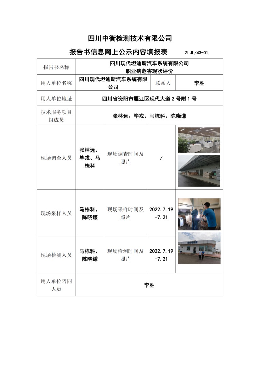 四川现代坦迪斯汽车系统有限公司职业病危害现状评价