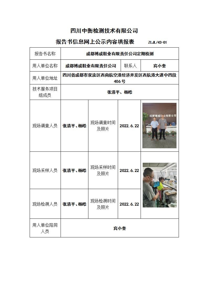 成都博成鞋业有限责任公司职业病危害定期检测