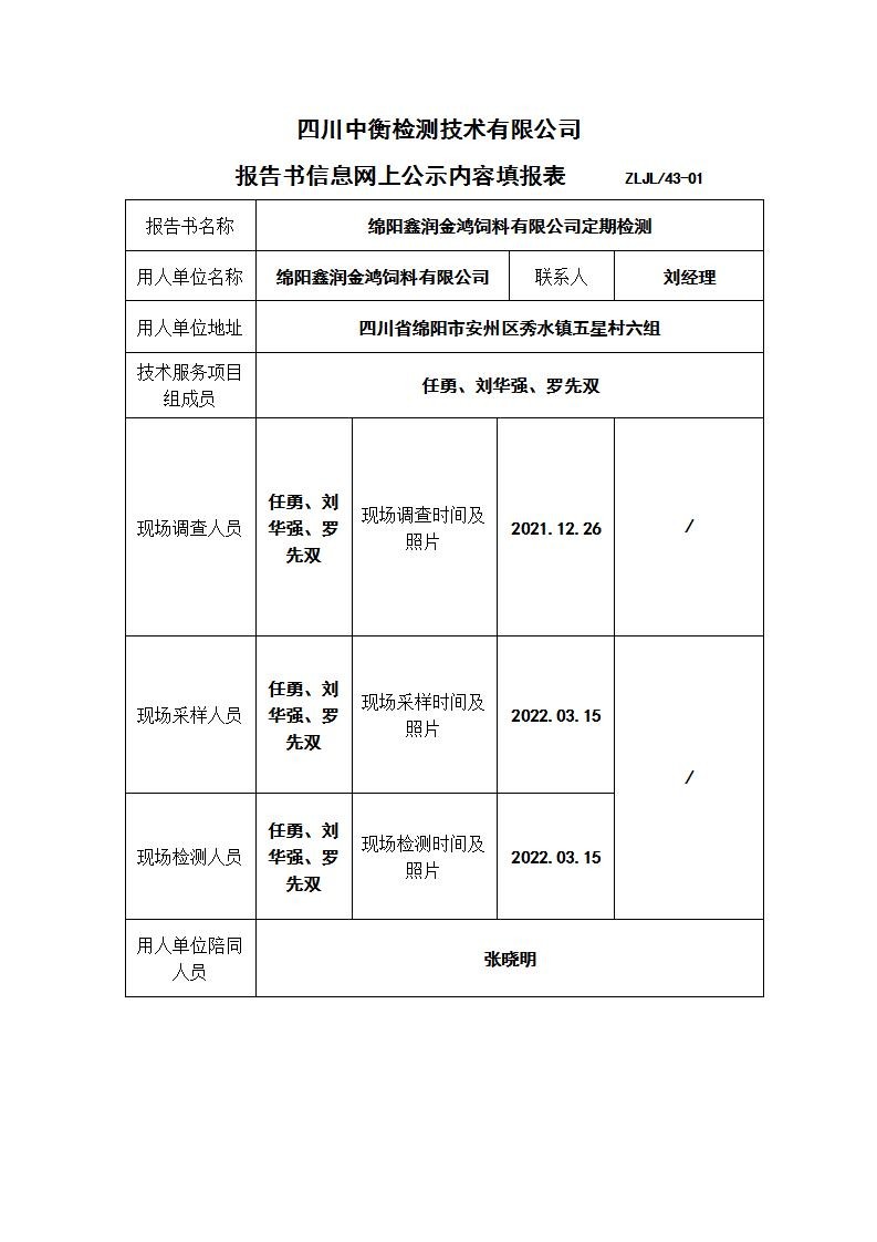 绵阳鑫润金鸿饲料有限公司职业病危害定期检测
