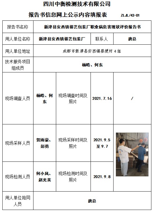 新津县安西镇馨艺包装厂职业病危害现状评价