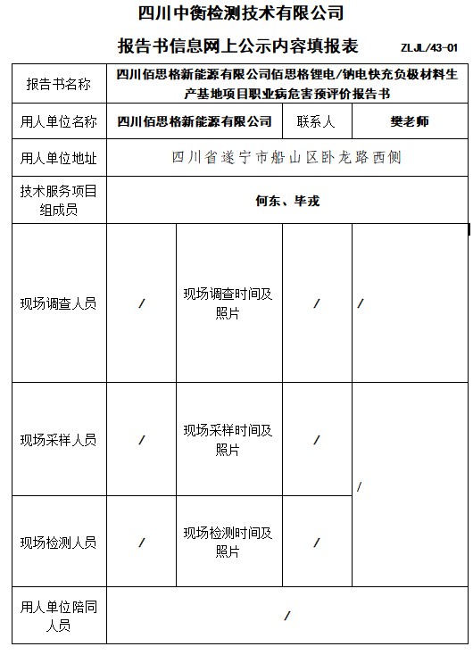 四川佰思格新能源有限公司佰思格锂电/钠电快充负极材料生产基地项目职业病危害预评价