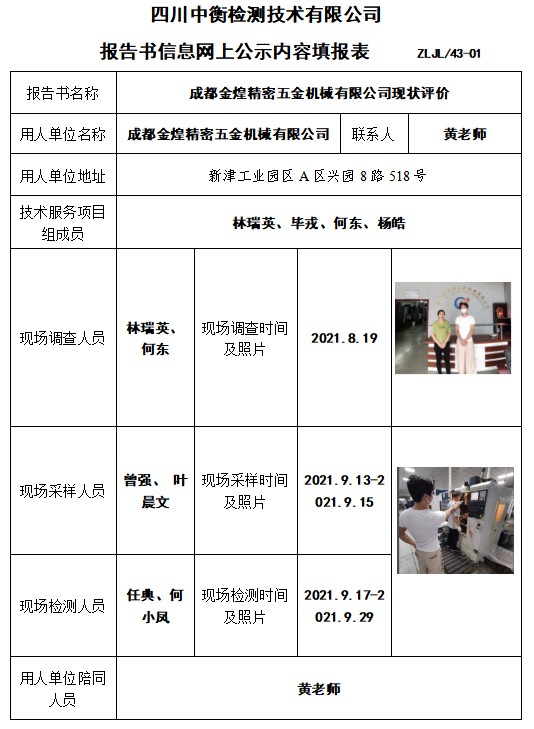成都金煌精密五金机械有限公司现状评价
