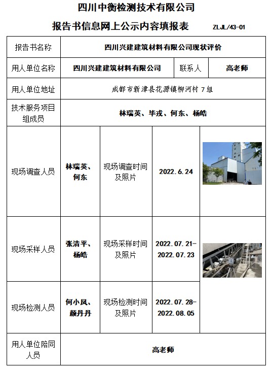 四川兴建建筑材料有限公司现状评价