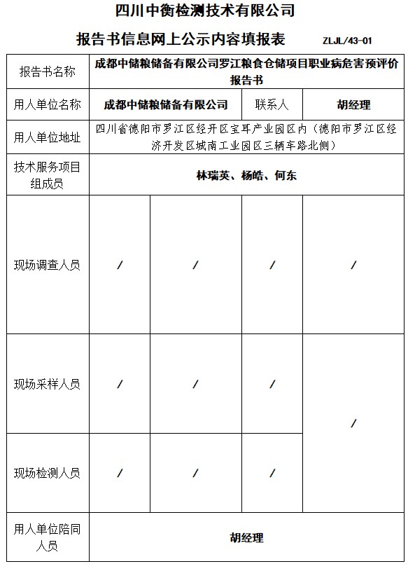 成都中储粮储备有限公司罗江粮食仓储项目职业病危害预评价