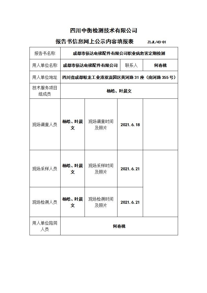 成都市佰达电梯配件有限公司职业病危害定期检测