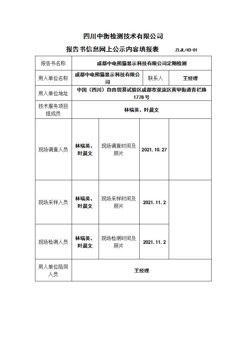 成都中电熊猫显示科技有限公司职业病危害定期检测
