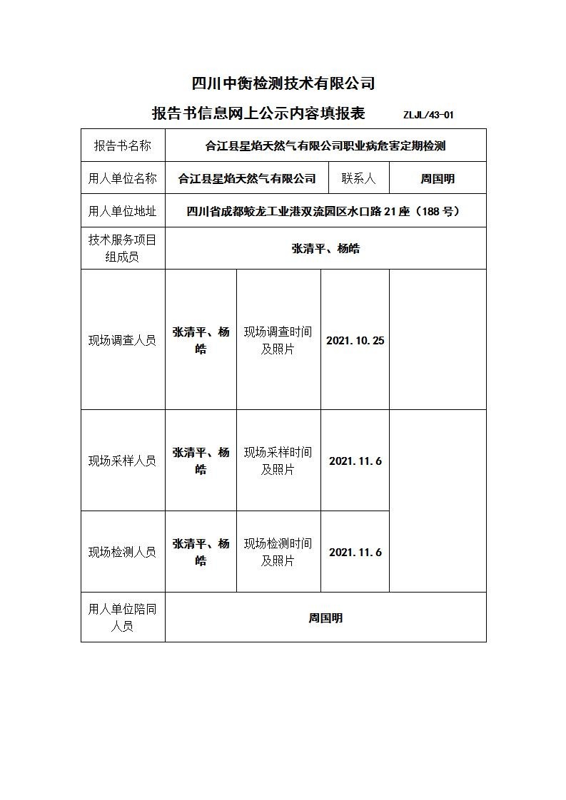 合江县星焰天然气有限公司职业病危害定期检测