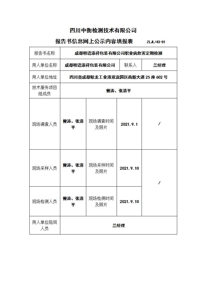 成都明语添祥包装有限公司职业病危害定期检测