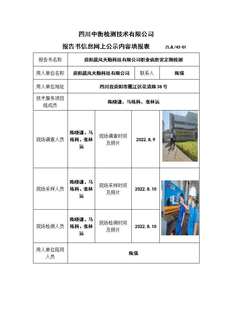 资阳晨风天勤科技有限公司职业病危害定期检测