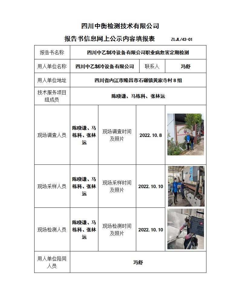 四川中乙制冷设备有限公司职业病危害定期检测