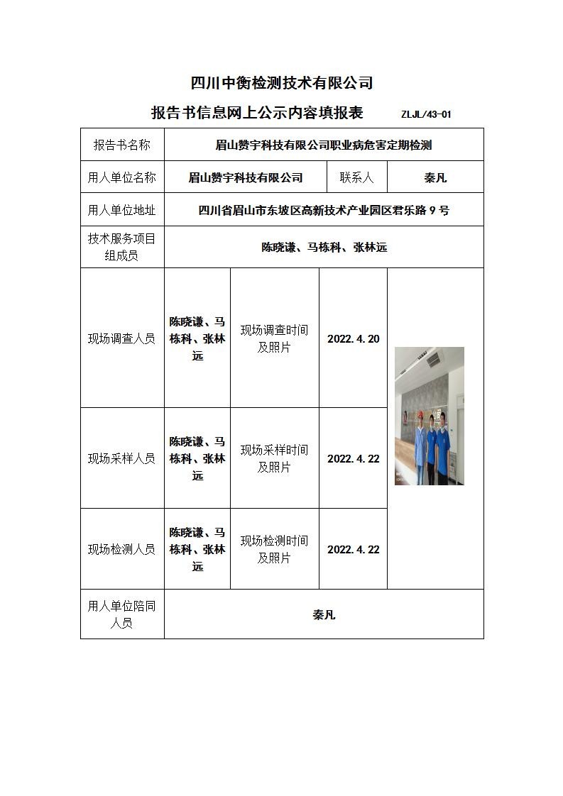 眉山赞宇科技有限公司职业病危害定期检测