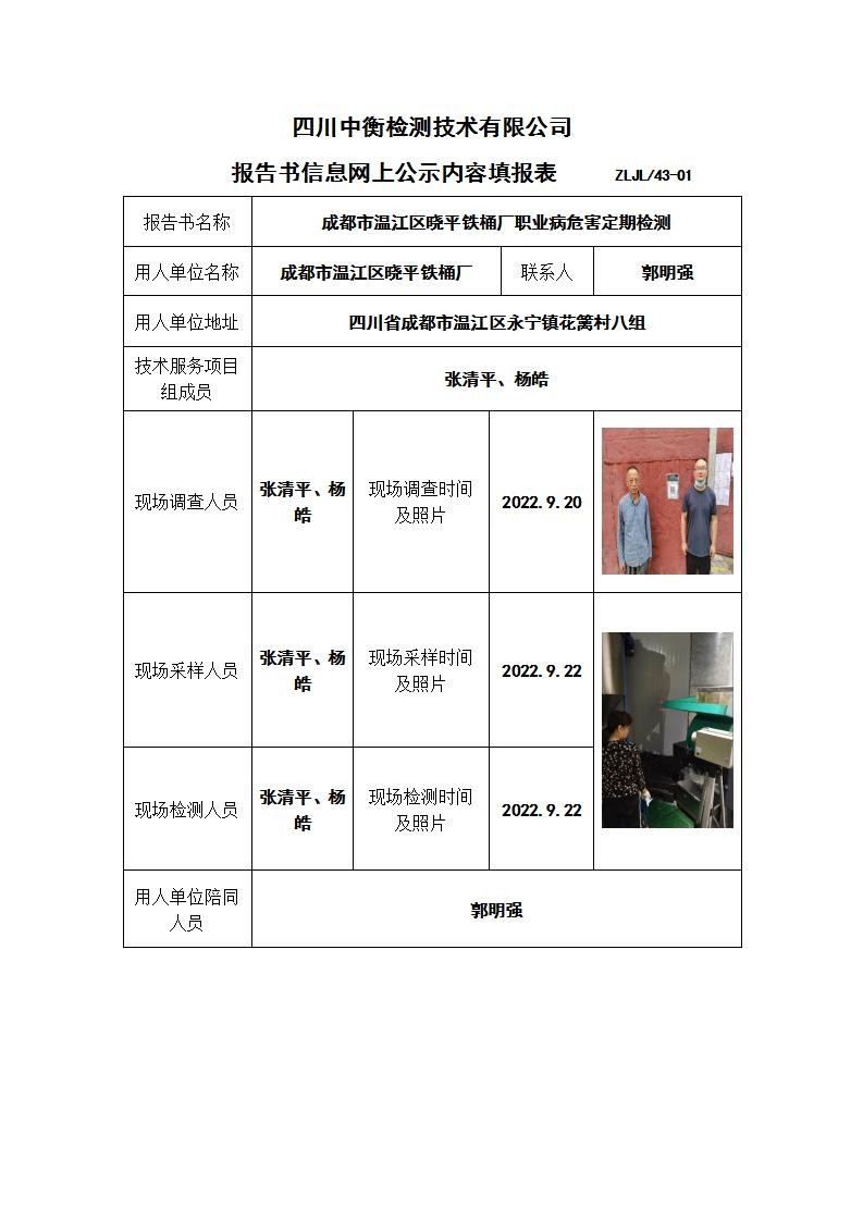 成都市温江区晓平铁桶厂职业病危害定期检测