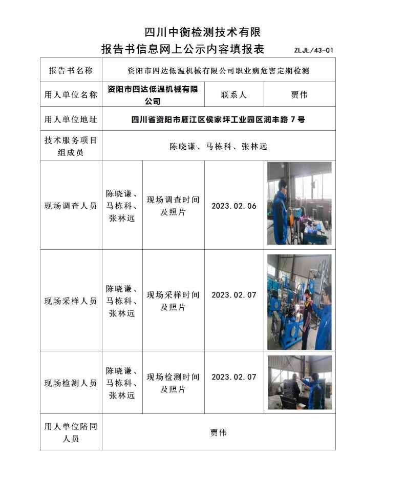 资阳市四达低温机械有限公司职业病危害定期检测