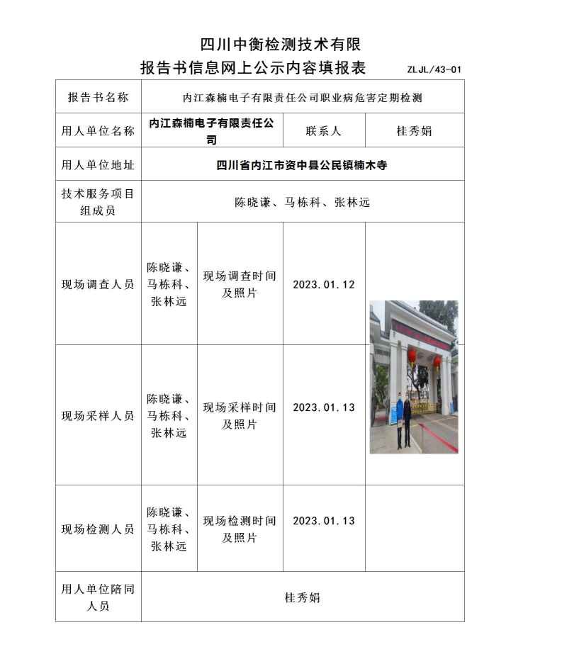 内江森楠电子有限责任公司职业病危害定期检测