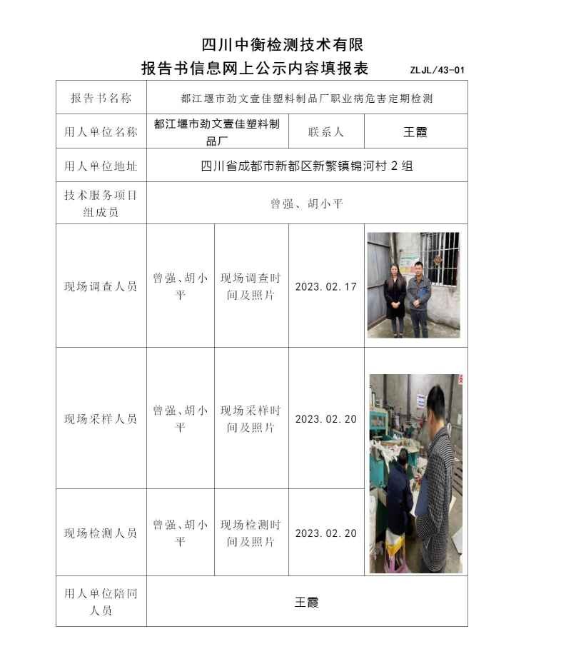 都江堰市劲文壹佳塑料制品厂职业病危害定期检测