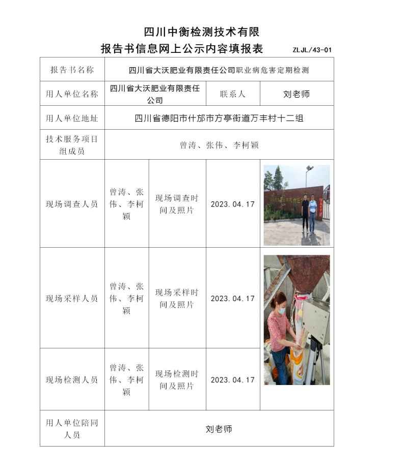 四川省大沃肥业有限责任公司职业病危害定期检测