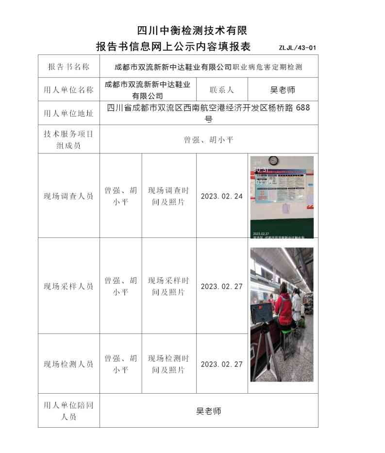 成都市双流新新中达鞋业有限公司职业病危害定期检测