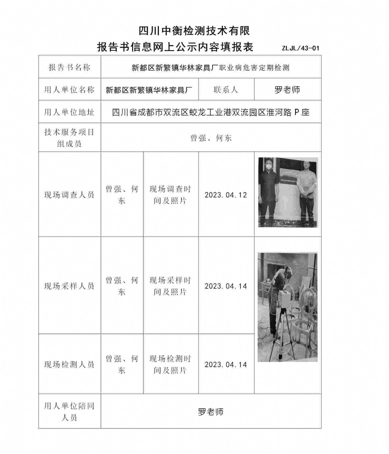 新都区新繁镇华林家具厂职业病危害定期检测