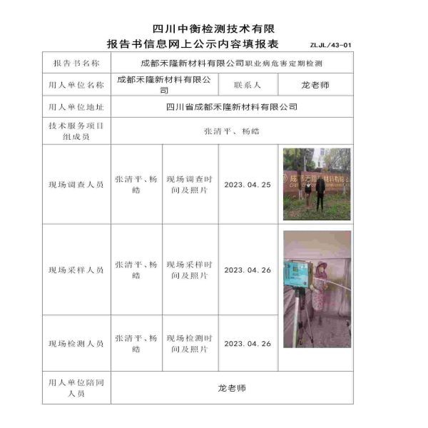 成都禾隆新材料有限公司职业病危害定期检测
