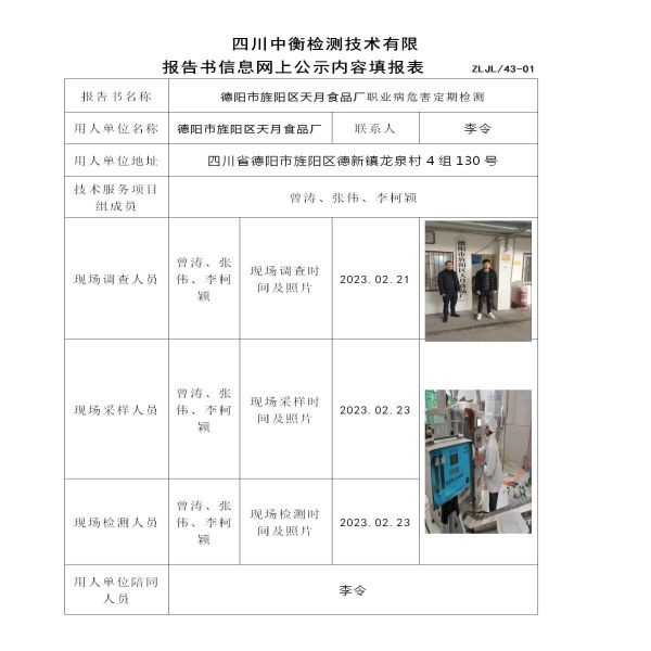 德阳市旌阳区天月食品厂定期检测