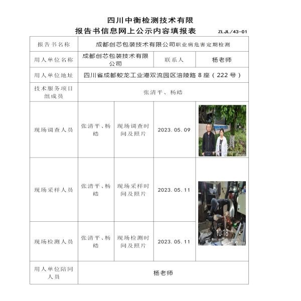 成都创芯包装技术有限公司职业病危害定期检测