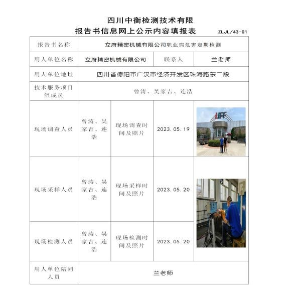 立府精密机械有限公司职业病危害定期检测