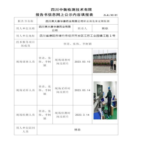 四川美大康华康药业有限公司职业病危害定期检测
