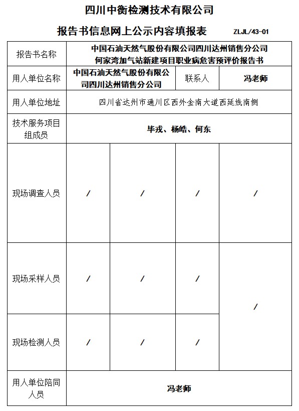 中国石油天然气股份有限公司四川达州销售分公司 何家湾加气站新建项目预评价