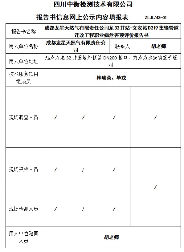 成都龙星天然气有限责任公司龙32井站-文安站D219集输管道迁改工程预评价