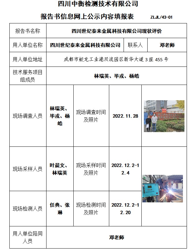 四川世纪泰来金属科技有限公司现状评价
