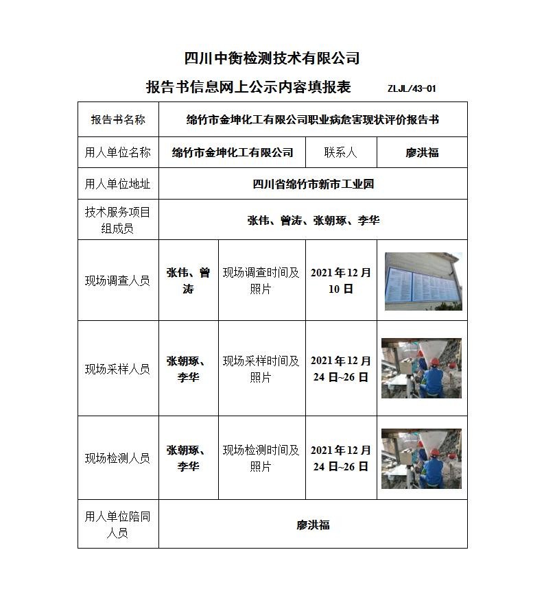 绵竹市金坤化工有限公司职业病危害现状评价