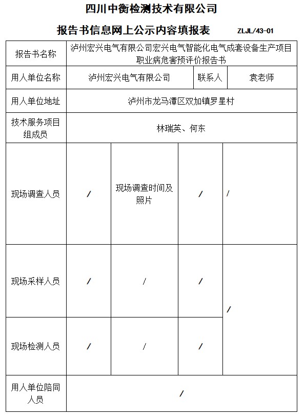 泸州宏兴电气有限公司宏兴电气智能化电气成套设备生产项目预评价